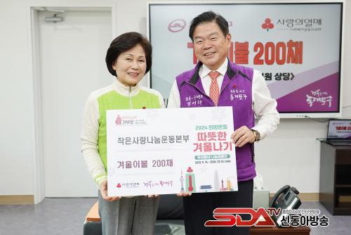 ÀÌÇÊÇü µ¿´ë¹®±¸Ã»ÀåÀº ¡°Áö³ÇØ¿¡ ÀÌ¾î ¿ÃÇØµµ ¾î·Á¿î ÀÌ¿ôµéÀ» À§ÇØ µ¿Àý±â¸¦ µû¶æÇÏ°Ô º¸³¾ ¼ö ÀÖµµ·Ï À̺ÒÀ» ±âÅ¹ÇØÁֽŠÀÛÀº»ç¶û³ª´®¿îµ¿º»ºÎ¿¡ °¨»çµå¸°´Ù.¡±¸ç, ¡°¿ÃÇØ´Â Áö³Çغ¸´Ù µÎ ¹è ¸¹Àº À̺ÒÀ» ÀüÇØÁּż ¿ÂÁ¤µµ µÎ ¹è °¡µæÈ÷ ´ã±ä °Í °°´Ù. ±âÅ¹ÇØ ÁØ À̺ÒÀº ¿ì¸® ÁÖº¯ÀÇ ¾î·Á¿î ÀÌ¿ôµéÀ» À§ÇØ ½Å¼ÓÈ÷ Àü´ÞÇϰڴÙ.¡±°í ¹àÇû´Ù.