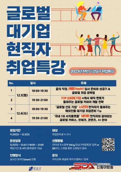 1ÀÏÂ÷ 1±³½Ã(18½Ã~19½Ã 30ºÐ)¿¡´Â ±Û·Î¹ú±â¾÷ ¾ÖÇÃÀÇ ÀÔ»ç Áغñ¿Í ¼º°ø±â&±Û·Î¹ú Ãë¾÷ °ø·«¹ý, 2±³½Ã(19½Ã 30ºÐ~21½Ã)¿¡´Â À¯¸í ¼ÒºñÀç ±â¾÷ 4°³»çÀÇ ÀçÁ÷ ¸àÅä°¡ µé·ÁÁÖ´Â ±Û·Î¹ú Ä¿¸®¾î °³¹ß Àü·«, 2ÀÏÂ÷ 1±³½Ã¿¡´Â LGÀüÀÚ ÇöÁ÷ÀÚ°¡ µé·ÁÁÖ´Â ´ë±â¾÷ Ãë¾÷ Áغñ, 2±³½Ã´Â ³×À̹ö ÇöÁ÷ÀÚ¿Í ¾Ë¾Æº¸´Â ±Û·Î¹ú Ä¿¸Ó½º, ÇÉÅ×Å©, ÄÜÅÙÃ÷, AI ºÐ¾ß Ãë¾÷ µîÀ» ÁÖÁ¦·Î °ÀǸ¦ ÁøÇàÇÑ´Ù.