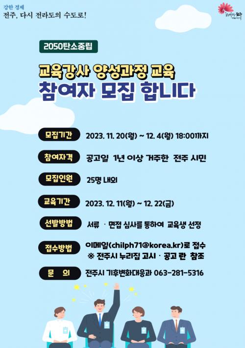 [½Åµ¿¾Æ¹æ¼Û=ÀüÀº¿µ±âÀÚ] ÀüÁֽð¡ ¿À´Â 12¿ù 4ÀϱîÁö ź¼ÒÁ߸³ ±³À°¿¡ °ü½ÉÀÌ ÀÖ´Â ½Ã¹ÎÀ» ´ë»óÀ¸·Î ¡®2050ź¼ÒÁ߸³ ±³À°°­»ç ¾ç¼º°úÁ¤¡¯ÀÇ Âü°¡ÀÚ¸¦ °ø°³ ¸ðÁýÇÑ´Ù.