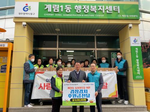 À̹ø Çà»ç¿¡´Â Á¤Áö·Ã Çѱ¹¸¶»çȸ ±¤ÁÖÁö»çÀå, °è¸²1µ¿ Áö¿ª»çȸº¸ÀåÇùÀÇü ±è¿µ¼ø À§¿øÀå µî 20¿© ¸íÀÌ Âü¿©ÇÑ °¡¿îµ¥ Çѱ¹¸¶»çȸ ±¤ÁÖÁö»çÀÇ ÈÄ¿ø±Ý 6¹é¿©¸¸ ¿øÀ¸·Î ¸¶·ÃÇÑ ±èÀå±èÄ¡¸¦ °ü³» Ãë¾à°èÃþ 300°¡±¸¿¡ 3kg¾¿ Àü´ÞÇß´Ù.