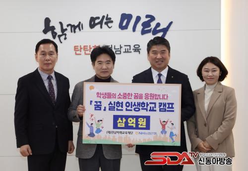 À̱æÈÆ Àü³²¹Ì·¡±³À°Àç´Ü ¿øÀåÀº¡°NH³óÇùÀºÇàÀÇ Æ¯º°ÇÑ ÀåÇбâ±ÝÀº ¿ì¸® ÇлýµéÀÌ ÀÚ½ÅÀÇ ²ÞÀ» ¼³°èÇϰí, ÀÚ±âÁÖµµÀûÀ¸·Î À̸¦ ½ÇÇöÇÒ ¼ö ÀÖ´Â ¿ª·®À» Ű¿öÁÙ °Í¡±À̶ó¸ç ¡°Àç´ÜÀº ¾ÕÀ¸·Îµµ¡®²Þ ½ÇÇö±Ý¡¯¡®²Þ ½ÇÇö ÀλýÇб³¡¯¸¦ ÅëÇØ Àü³²ÀÇ ÇлýµéÀÌ ¹Ì·¡ÀÇ ÁÖ¿ªÀ¸·Î ¼ºÀåÇÒ ¼ö ÀÖµµ·Ï ÃÖ¼±À» ´ÙÇϰڴ١±°í ¸»Çß´Ù.