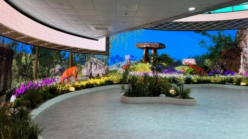 ¶ÇÇÑ °¡·Î 25m, ¼¼·Î 5.4mÀÇ ´ëÇü ½ºÅ©¸°Àº 320¡¿160§®ÀÇ LED¸ðµâ 2,000°³ ÀÌ»óÀ» Á¶ÇÕÇÑ ÃʰíÈÁú LED Ä¿ºêµå ȸéÀ¸·Î »öäÀÇ ¼±¸íµµ¿Í ¸ôÀÔ°¨À¸·Î °ü¶÷°´µéÀÇ Åº¼ºÀ» ÀھƳ½´Ù.
