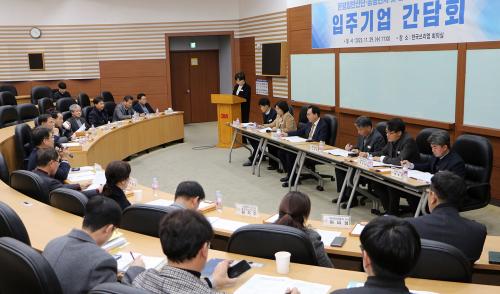 °£´ãȸ¿£ »ê´Ü¡¤³ó°ø´ÜÁö ÀÔÁÖ±â¾÷ÇùÀÇȸ ¼Ò¼Ó ¾÷ü 13°÷ ´ëÇ¥¡¤ÀÓÁ÷¿øÀÌ Âü¼®Çß´Ù. ³ª»óÀÎ ¹Ì·¡Àü·«»ê¾÷±¹ÀåÀ» ºñ·ÔÇÑ ÀÏÀÚ¸®°æÁ¦°ú, »óÇϼöµµ°ú, ±³ÅëÇàÁ¤°ú ºÎ¼Àåµµ µ¿¼®ÇØ ±â¾÷ ¾Ö·Î»çÇ×À» ¼ö·ÅÇß´Ù.