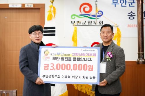 ºÎ¾È±ºÇâ¿ìȸ´Â »çȸ°øÇå ½Çõ ¹× ÀÚ¿øºÀ»ç Ȱ¼ºÈ¸¦ À§ÇØ ºÎ¾È±º ÀÚ¿øºÀ»ç¼¾ÅÍ¿Í 2021³â ¾÷¹« Çù¾àÀ» ü°áÇÑ ¹Ù ÀÖÀ¸¸ç, Áö³ 2022³â 1¿ù¿¡´Â À§µµ ½Äµµ ÈÀç ÀÌÀç¹ÎÀ» À§ÇÑ À§¹®±Ý 777¸¸ ¿ø Àü´Þ, 2023³â¿¡´Â ½Å³âÇÏ·Êȸ¸¦ °³ÃÖÇÏ¿© ºÎ¾È±º ³ëÀÎȸ¿Í ÇÔ²² ±¹³»»ê »ý ¼Ò°¥ºñ 1¾ï8õ9¹é¸¸ ¿ø, Ȩ»ï½ºÆ½ 4õ9¹é¸¸ ¿ø µî ÃÑ 2¾ï 3õ8¹é ¸¸¿ø»ó´ç ¹°Ç° ±âºÎÇÏ¿´À¸¸ç, 8¿ù¿£ Àë¹ö¸®´ëȸ »ý¼ö 3,000°³ ±âŹ, ºÎ¾ÈÁö¿ª Æø¿ì ÇÇÇØ º¹±¸ Áö¿ø ¼º±Ý 6¹é30¸¸ ¿øÀ» Àü´ÞÇÏ´Â µî ºÎ¾È¿¡ ¾ÖƶÇÑ »ç¶ûÀ» ÀüÇϰí ÀÖ´Ù.