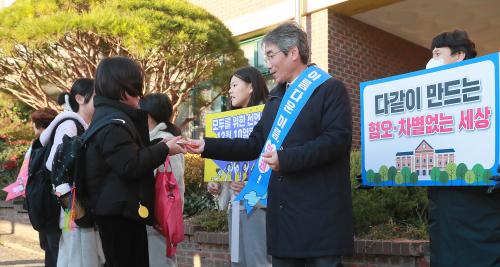 ÀüºÏ±³À°Ã»Àº ¿ÃÇØ ù ½ÃÇàµÇ´Â ¡®ÀüºÏ±³À°ÀαÇÁÖ°£¡¯À» ¸Â¾Æ 4ÀÏ ¡®¸ðµÎÀÇ ÀαÇ, ¼·Î Á¸ÁßÇÏ´Â ¿ì¸®¡¯¶ó´Â ÁÖÁ¦·Î ÀüÁÖ¼°îÃʵîÇб³ ¾Õ¿¡¼ Ä·ÆäÀÎÀ» ½Ç½ÃÇß´Ù.