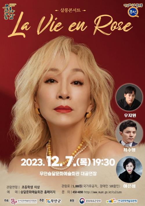 ÀÌ °ø¿¬Àº Çѱ¹¹®È¿¹¼úȸ°ü¿¬ÇÕȸ°¡ ÁÖÃÖÇÏ°í ¹«¾È±º, ¢ß¿¡ÀÌÄ¡Á¦ÀÌ¿£ÅÍÅ×ÀÎ¸ÕÆ®°¡ ÁÖ°üÇÏ¸ç ¹®ÈüÀ°°ü±¤ºÎ, Çѱ¹¹®È¿¹¼úÀ§¿øÈ¸°¡ ÈÄ¿øÇÏ´Â ¡®2023³â ¹®¿¹È¸°ü°ú ÇÔ²²ÇÏ´Â ¹æ¹æ°î°î ¹®È°ø°¨»ç¾÷¡¯À¸·Î ÃßÁøµÈ´Ù.
