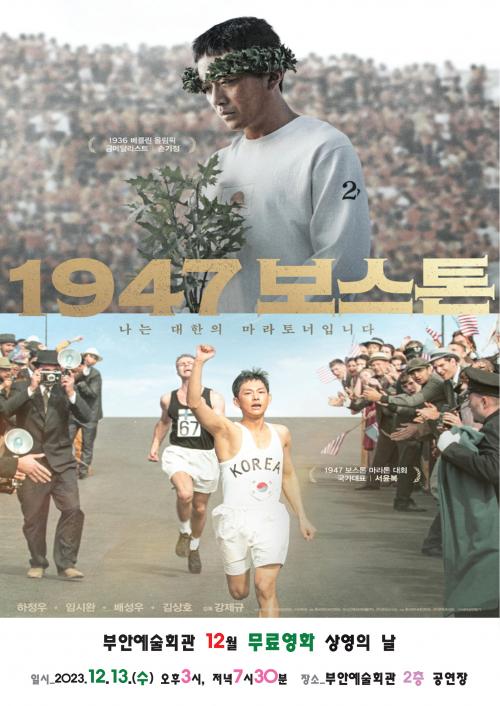 ¿µÈ ¡®1947 º¸½ºÅ桯Àº 1947³â ±¤º¹ ÈÄ Ã³À½À¸·Î űظ¶Å©¸¦ ´Þ°í ±¹Á¦ ´ëȸ¿¡ ÃâÀüÇϱâ À§ÇÑ ¸¶¶óÅä³ÊµéÀÇ µµÀü°ú °¡½¿ ¹÷Âù ¿©Á¤À» ±×¸° À̾߱âÀÌ´Ù. ÀÌ ¿µÈ¿¡¼ Çѱ¹ ¸¶¶óÅæÀÇ Àü¼³ ¡®¼Õ±âÁ¤¡¯ ¿ªÀ» ¸ÃÀº ÇÏÁ¤¿ì°¡ Ä«¸®½º¸¶ ³ÑÄ¡´Â ¸®´õ½ÊÀ¸·Î °ü°´À» »ç·ÎÀâ°í, º¸½ºÅæ ¸¶¶óÅæ ´ëȸ ¿ì½ÂÀÚ ¡®¼À±º¹¡¯ ¿ªÀÎ ÀӽÿÏÀÌ ½ÇÁ¸ Àι°°ú ¿Ïº®ÇÑ ¿ªÀ» ÀÚ¶ûÇÏ¸ç ±ØÀÇ ¸ôÀÔµµ¸¦ ¿Ã·È´Ù.
