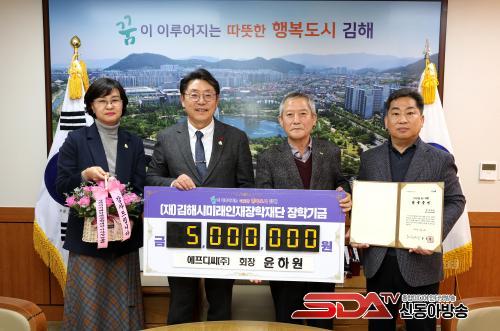 [½Åµ¿¾Æ¹æ¼Û´º½º=±èÁÖ¿¬±âÀÚ] ±èÇØ½Ã¹Ì·¡ÀÎÀçÀåÇÐÀç´Ü(ÀÌ»çÀå ÇöÁ¾¿ø)Àº 14ÀÏ ¿¡ÇÁµð¾¾(ÁÖ)(ȸÀå À±ÇÏ¿ø)¿¡¼­ ÀåÇбâ±Ý 500¸¸¿øÀ» ±âŹÇß´Ù°í ¹àÇû´Ù.