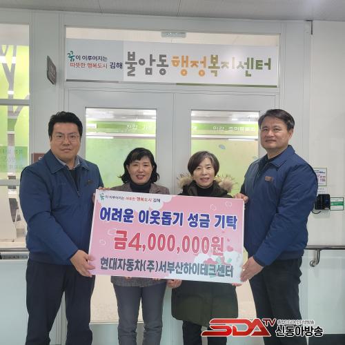 [½Åµ¿¾Æ¹æ¼Û´º½º=±èÁÖ¿¬±âÀÚ] Çö´ëÀÚµ¿Â÷(ÁÖ)¼­ºÎ»êÇÏÀÌÅ×Å©¼¾ÅÍ(¼¾ÅÍÀå ½ÅÀ±È£)´Â 18ÀÏ ±èÇØ½Ã ºÒ¾Ïµ¿ÇàÁ¤º¹Áö¼¾ÅÍ(µ¿Àå ÇѼ÷Á¤)¸¦ ¹æ¹®ÇØ ¼º±Ý 400¸¸¿øÀ» ±âŹÇß´Ù.