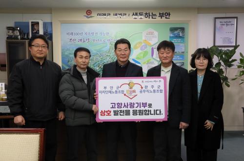 À̹ø »óÈ£±âºÎ´Â ºÎ¾È±º ÀÚÄ¡´Üü³ëµ¿Á¶ÇÕ°ú ¿ÏÁÖ±º °ø¹«Á÷³ëµ¿Á¶ÇÕÀÌ ½Ã±º°£ Çù·ÂÀ» ÅëÇØ ´ë³»¡¤¿Ü¿¡ Áö¿ªÀÇ °íÇâ»ç¶û±âºÎÁ¦¸¦ ³Î¸® ¾Ë¸®°í ÇÔ²² ÀÀ¿øÇÔÀ¸·Î½á ÀÚÀ²ÀûÀÎ ±âºÎ ¹®È È®»ê ¹× Áö¿ª »ó»ý ÈÇÕÀ» Çϱâ À§ÇØ ¸¶·ÃµÆ´Ù.