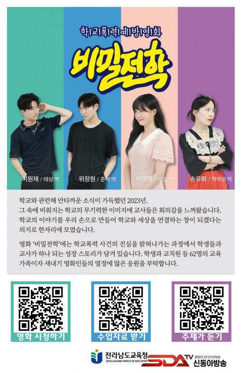 [½Åµ¿¾Æ¹æ¼Û Àü³²¿©¼ö=À̽ŵ¿±âÀÚ]Àü¶ó³²µµ±³À°Ã»ÀÌ Çб³Æø·Â¿¹¹æÀ» ÁÖÁ¦·Î ¸¸µç ¿µÈ­ 'ºñ¹ÐÀüÇÐ'ÀÌ Áö³­ 14Àϰú 18ÀÏ È£Æò ¼Ó¿¡ ½Ã»çȸ¸¦ ¸¶Ä¡°í ´©±¸³ª º¼ ¼ö ÀÖµµ·Ï ¼ö¾÷ÀÚ·á¿Í ÇÔ²² °ø°³µÈ´Ù.