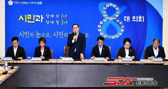 7¿ù 13ÀÏ¿¡´Â Á¦230ȸ ÀÓ½Ãȸ 1Â÷ º»È¸ÀÇ Àü, ¸¶Âù°¡Áö·Î ½ÃÀÇȸ Çö°ü¿¡¼­ Àüü ÀÇ¿øÀÌ Âü¿©ÇÑ °¡¿îµ¥ ¡®¿©¼ö ºÎ¿µ¾ÆÆÄÆ® à» ¹Î¿ø ÇØ°á Ã˱¸ ¼º¸í¼­¡¯¸¦ ¹ßÇ¥Çß´Ù.
