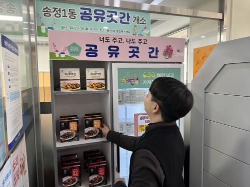 ¼ÛÁ¤1µ¿ ÇàÁ¤º¹Áö¼¾ÅÍ ÀÔ±¸¿¡ ¼³Ä¡µÈ Áø¿Àå, ³ÃÀå°í¸¦ µÖ ÁֹΠ´©±¸³ª ¾²Áö ¾Ê´Â ¹°Ç°, ¸ÔÁö ¾Ê´Â ½Äǰ µîÀ» ä¿ì°í, ÇÊ¿äÇÑ »ç¶÷Àº ÀÚÀ¯·Ó°Ô °¡Á®°¥ ¼ö ÀÖµµ·Ï ¿î¿µÇϰí ÀÖ´Ù.