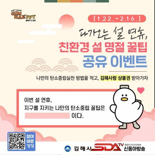 À̳¯ºÎÅÍ 2¿ù 16ÀϱîÁö ÇÑ ´Þ°£ ±èÇØ½Ã SNS ÇØ´ç ÆäÀÌÁö ³» ³×À̹öÆûÀ» ÅëÇØ ¾È³»µÈ ³»¿ëÀ» µû¶ó ÀڽŸ¸ÀÇ Åº¼ÒÁ߸³ ²ÜÆÁÀ» ÀÛ¼º‧Á¦ÃâÇÏ¸é µÇ°í Ãß÷À» ÅëÇØ Âü¿©½Ã¹Î 30¸í¿¡°Ô ±èÇØ»ç¶û»óǰ±Ç(1¸¸¿ø±Ç)À» Áö±ÞÇÑ´Ù.