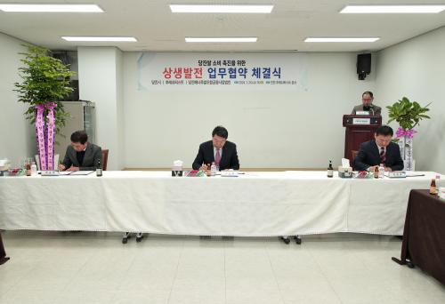 À̳¯ Çù¾à½Ä¿¡´Â ¿À¼ºÈ¯ ´çÁø½ÃÀå, ±èÁ¤¿í ¢ßÈÄ·¹½¬ÆÛ½ºÆ® ´ëÇ¥ÀÌ»ç, ¹Ú½Â¼® ´çÁøÇسª·ç½ÒÁ¶ÇÕ°øµ¿»ç¾÷¹ýÀδëÇ¥ÀÌ»ç, À±º¹Çö ÀçÀδçÁø½Ã¹ÎȸÀå°ú ¼Û¾Ç․´çÁø․¼Û»ê³óÇù Á¶ÇÕÀåÀÌ Âü¼®ÇØ ´çÁø½Ò °ø±Þ Ȱ¼ºÈ¸¦ À§ÇØ »óÈ£ Çù·ÂÀ» ¾à¼ÓÇß´Ù.