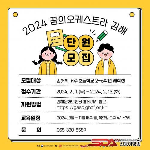 À̹ø ½Å±Ô´Ü¿ø ¸ðÁý´ë»óÀº À½¾Ç¿¡ °ü½É°ú ¿Á¤ÀÌ ÀÖ´Â ±èÇØ½Ã °ÅÁÖ ÃʵîÇб³ 2 ~ 6Çгâ ÀçÇлý 15¸í ³»¿Ü·Î, Ãë¾à°èÃþÀ» ¿ì´ë ¼±¹ßÇÒ ¿¹Á¤ÀÌ´Ù. Á¢¼ö´Â ±èÇØ¹®ÈÀÇÀü´ç ȨÆäÀÌÁö¿¡¼ ¾ç½ÄÀ» ´Ù¿î¹Þ¾Æ À̸ÞÀÏ(gascart2005@gmail.com)·Î Á¢¼öÇÏ¸é µÈ´Ù. »ó¼¼ ³»¿ëÀº ±èÇØ¹®ÈÀÇÀü´ç ȨÆäÀÌÁö(https://gasc.ghcf.or.kr/home/main)¿¡¼ È®ÀÎ °¡´ÉÇÏ´Ù.