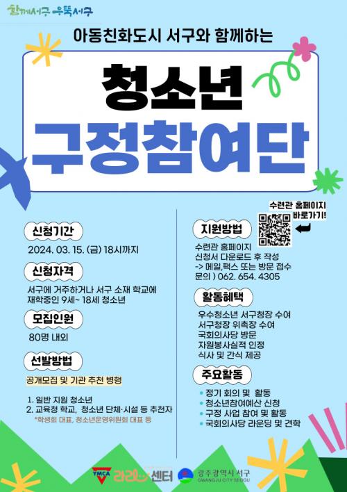 û¼Ò³â±¸Á¤Âü¿©´ÜÀº Áֹεî·Ï ±âÁØ ¼±¸¿¡ °ÅÁÖÇϰųª ¼±¸ ¼ÒÀç Çб³¿¡ ÀçÇÐ ÁßÀÎ 9¼¼ ÀÌ»ó 18¼¼ ÀÌÇÏ Ã»¼Ò³â ´©±¸³ª Áö¿ø°¡´ÉÇϸç, ¿À´Â 4¿ùºÎÅÍ ¼±¸Ã»¼Ò³â¼ö·Ã°ü(¶ó¶ó¼¾ÅÍ)¿Í ÇÔ²² º»°ÝÀûÀΠȰµ¿À» ½ÃÀÛÇÒ ¿¹Á¤ÀÌ´Ù. Âü¿© Çлýµé¿¡°Ô´Â ¿ì¼öȰµ¿ Æ÷»ó, ÀÚ¿øºÀ»ç½Ã°£ ÀÎÁ¤, °¢Á¾ ÇÁ·Î±×·¥ ¹× ±³À° Âü¿©±âȸ Á¦°ø µî ´Ù¾çÇÑ ÇýÅÃÀÌ Á¦°øµÈ´Ù.