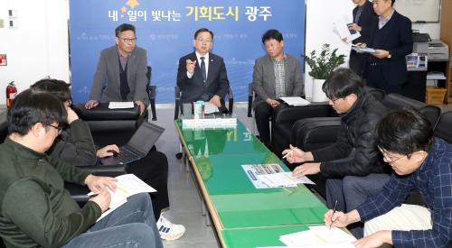 ±¤ÁÖ½Ã¿Í ÀÚÄ¡±¸´Â Áö³ 7ÀÏ ÇàÁ¤ºÎ½ÃÀå ÁÖÀç·Î ¿µ»óȸÀǸ¦ ¿¾î 96°³ ÇàÁ¤µ¿°ú ±¤ÁÖ½ÃÁ¾ÇհǼ³º»ºÎ Á÷¿øÀÌ 1´ë 1·Î ÆÀÀ» ±¸¼ºÇØ Áö¿ª µµ·ÎÆÄ¼Õ(Æ÷ƮȦ)À» Àü¼öÁ¶»çÇß´Ù.