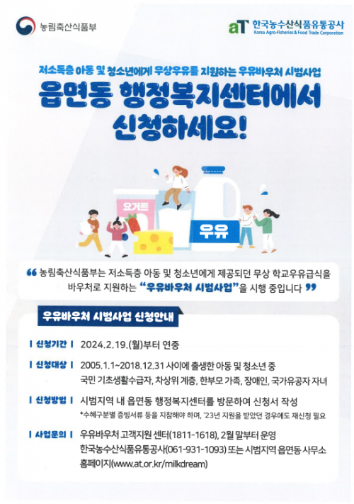 °î¼º±º¿¡ µû¸£¸é, ¿ìÀ¯¹Ù¿ìó ½Ã¹ü»ç¾÷Àº ³ó½ÄǰºÎ°¡ Çб³¿ìÀ¯±Þ½Ä»ç¾÷À» ÅëÇØ Ãë¾à°èÃþ Çлý¿¡°Ô °ø±ÞÇÏ´ø ¹«»ó¿ìÀ¯¸¦ °¡Á¤¿¡¼ »ç¿ëÇÒ ¼ö ÀÖ´Â ¹Ù¿ìóīµå·Î Á¦°øÇÏ´Â »ç¾÷À¸·Î ¿ù 1¸¸ 5õ¿ø Çѵµ·Î Áö±ÞµÈ´Ù.