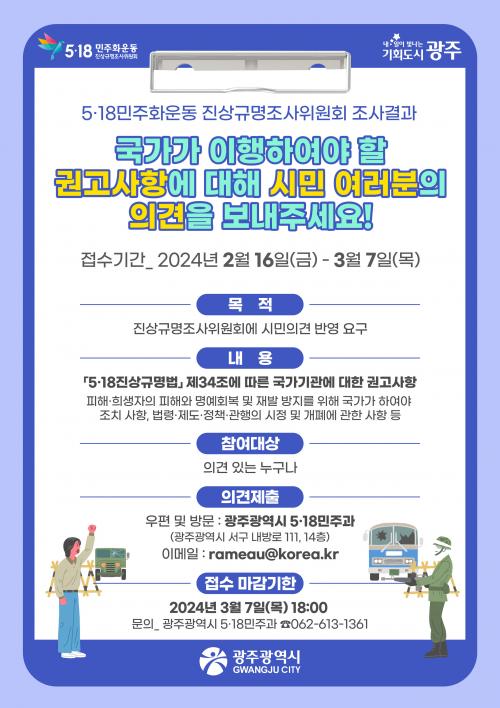 ±¤ÁÖ½Ã, 5¡¤18Áø»ó±Ô¸íÁ¶»ç ½Ã¹Î ÀÇ°ß µè´Â´Ù