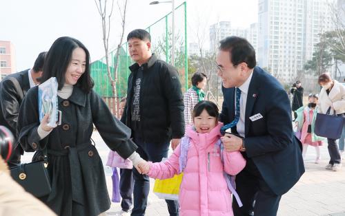 ¼°Å¼® ±³À°°¨Àº À̳¯ ÀÔÇÐ½Ä Çà»ç¿¡ Âü¼®Çϱâ À§ÇØ Çб³¿¡ ù¹ßÀ» ³»µó´Â ½ÅÀÔ»ýµéÀ» ±³¹® ¾Õ¿¡¼ ¸ÂÀÌÇϸç ÈûÂù Çб³»ýȰÀ» ÀÀ¿øÇß´Ù.