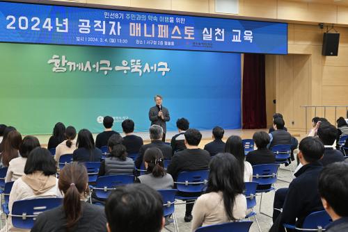 [½Åµ¿¾Æ¹æ¼Û=ÀÌÁöÇö±âÀÚ] ±¤ÁÖ±¤¿ª½Ã ¼­±¸(±¸Ã»Àå ±èÀ̰­)°¡ Áö³­ 4ÀÏ ¼­±¸Ã» µéºÒȦ¿¡¼­ Çѱ¹ ¸Å´ÏÆä½ºÅä½Çõº»ºÎ À̱¤Àç »ç¹«ÃÑÀåÀ» ÃÊÃ»ÇØ ¸Å´ÏÆä½ºÅä Æ¯°­À» °³ÃÖÇß´Ù.