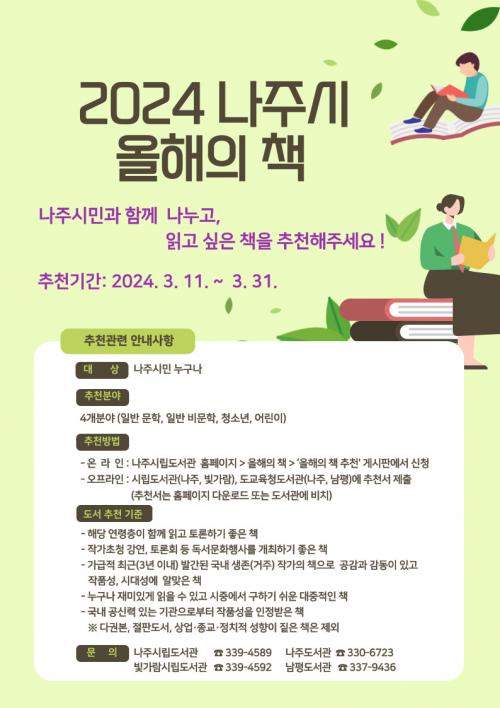 ¡®2024 ³ªÁֽà ¿ÃÇØÀÇ Ã¥¡¯¿¡ °üÇÑ ÀÚ¼¼ÇÑ ³»¿ëÀº ³ªÁֽø³µµ¼­°ü µî µµ¼­°ü ȨÆäÀÌÁö¿¡¼­ È®ÀÎÇÒ ¼ö ÀÖ´Ù.