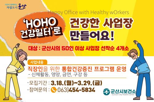 [½Åµ¿¾Æ¹æ¼Û=À̺´½Ä±âÀÚ] ±º»ê½Ã º¸°Ç¼Ò´Â 3050¼¼´ëÀÇ ÁÖ »ýȰÅÍÀÎ »ç¾÷ÀåÀ» ´ë»óÀ¸·Î ÅëÇհǰ­ÁõÁø ÇÁ·Î±×·¥À» ¿î¿µÇÏ´Â ¡®HOHO °Ç°­ÀÏÅÍ¡¯ »ç¾÷ ´ë»ó »ç¾÷Àå ¸ðÁýÀ» ½ÃÀÛÇÑ´Ù.