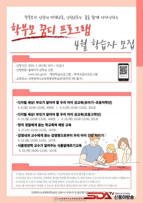 [½Åµ¿¾Æ¹æ¼Û ÀÎõ=À±¹Î½Ä±âÀÚ]ÀÎõ±¤¿ª½Ã±³À°Ã»Æò»ýÇнÀ°üÀº °ü³» Çкθ𸦠´ë»óÀ¸·Î ¡¸4¿ù Çкθð ²Þµð ÇÁ·Î±×·¥¡¹ ÇнÀÀÚ¸¦ 3¿ù 28ÀÏ ¿ÀÀü 10½ÃºÎÅÍ ¸ðÁýÇÑ´Ù.