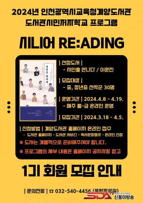 [½Åµ¿¾Æ¹æ¼Û ÀÎõ=À±¹Î½Ä±âÀÚ]ÀÎõ±¤¿ª½Ã±³À°Ã»°è¾çµµ¼­°üÀº µ¶¼­ Àü¹®°¡¿Í ÇÔ²²ÇÏ´Â ¿Â¶óÀÎ µ¶¼­µ¿¾Æ¸® ¡¸½Ã´Ï¾î RE:ADING¡¹ 1±â ȸ¿øÀ» 18ÀϺÎÅÍ 4¿ù 5ÀϱîÁö ¸ðÁýÇÑ´Ù.