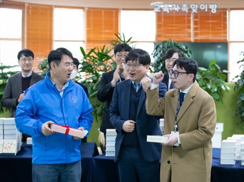 ÀÌ¿Í ´õºÒ¾î °úº°·Î ¡®Ãßõ Ã¥ ¼±¹° ¸±·¹ÀÌ¡¯¸¦ ½ÃÀÛÇØ Á÷¿øµéÀÇ µ¶¼­ ¹®È­¸¦ ´õ¿í È®»ê½Ã۰íÀÚ Çß´Ù. ¡®Ãßõ Ã¥ ¼±¹° ¸±·¹ÀÌ¡¯ÀÇ ½ÃÀÛÀ¸·Î À̳¯ ¿­¸° È®´ë°£ºÎȸÀÇ¿¡¼­´Â Áø·ÎÁøÇаúÀå°ú µ¶¼­±³À° ´ã´ç ÀåÇл簡 ÀÌÁ¤¼± ±³À°°¨°ú ¹ÚÁö¿µ ºÎ±³À°°¨¿¡°Ô ÃßõÇϴ åÀ» Á÷Á¢ ¼±¹°ÇÏ´Â Çà»ç°¡ ÁøÇàµÆ´Ù.