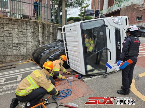 ¿©¼ö¼Ò¹æ¼ 119±¸Á¶´ë¿Í ±¸±Þ´ë¿øÀÌ ÇöÀå¿¡ µµÂøÇѹÙ, ±¸Á¶´ë»óÀÚ A¾¾´Â ȹ°Â÷¿¡ Áö°ÔÂ÷°¡ ¹°Ç°À» ½Æ´Â °úÁ¤¿¡¼ Â÷·®ÀÌ ÀüµµµÇ¾î ¹ßÀÌ ¿ìÃø Á¶¼ö¼® ¹®Æ´¿¡ ³¢¾î °íÅëÀ» È£¼ÒÇϰí ÀÖ´Â »óȲÀ̾ú´Ù.