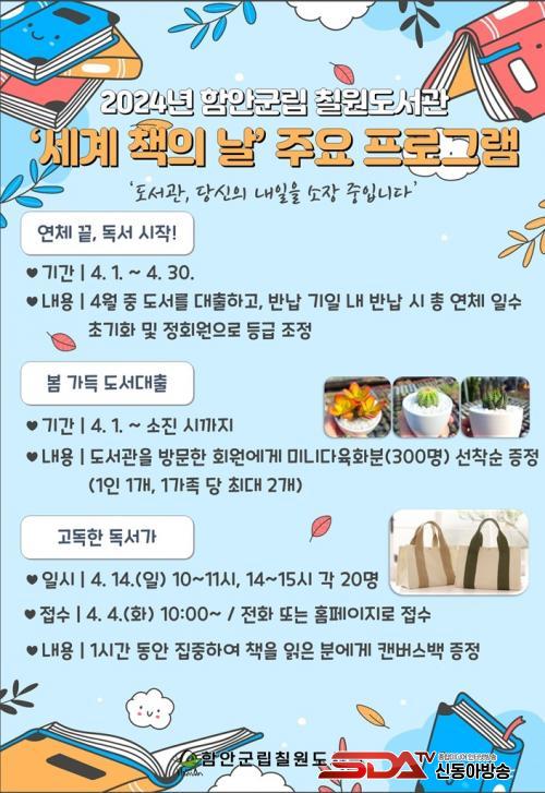 ¼¼°è Ã¥ÀÇ ³¯À» ¸ÂÀÌÇØ ´ëÃâÇÑ Ã¥À» ±â°£ ³» ¹Ý³³ÇÑ »ç¶÷ÀÇ ¿¬Ã¼Àϼö¸¦ ÃʱâÈÇÏ´Â ¡®¿¬Ã¼ ³¡, µ¶¼ ½ÃÀÛ¡¯ ÁÖ¾îÁø 1½Ã°£ µ¿¾È Ã¥À» ÀÐÀº »ç¶÷¿¡°Ô ĵ¹ö½º¹éÀ» ÁÖ´Â ¡®°íµ¶ÇÑ µ¶¼°¡¡¯ µµ¼ ´ëÃâÀÚ ¼±Âø¼ø 300¸í¿¡°Ô ¹Ì´Ï ´ÙÀ°ÈºÐÀ» ÁÖ´Â ¡®º½ °¡µæ µµ¼ ´ëÃ⡯ µî ´Ùä·Î¿î Çà»ç¸¦ ¿î¿µÇÒ ¿¹Á¤ÀÌ´Ù.