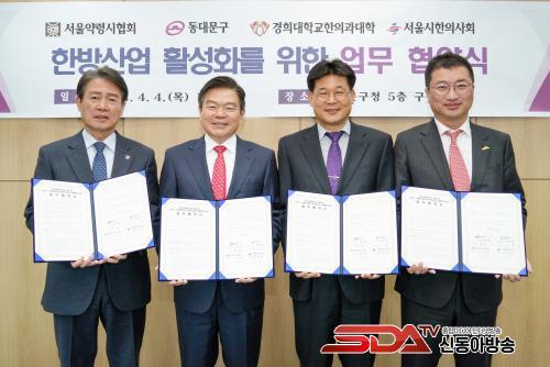 À̹ø Çù¾àÀ¸·Î 4°³ ±â°üÀº µ¿´ë¹®±¸¿¡¼ ÃßÁø ÁßÀÎ ¡®Àü±¹ Çѹæ»ê¾÷ »ó»ý¹ßÀüÇùÀÇȸ¡¯ ¹ßÁ·¿¡ ¾Õ¼, »óÈ£ °£ÀÇ ±³·ù ¹× Çù·ÂÀ» ÅëÇØ ħüµÇ¾î°¡´Â Çѹæ»ê¾÷ÀÇ È°·Î¸¦ ¸ð»öÇϰí, ÇÑÀǾà ÀÚ¿ø Ȱ¿ë ¹æ¾È ¸¶·Ã ¹× Áö¿ª°æÁ¦ Ȱ¼ºÈ¸¦ À§ÇØ ÇùÁ¶ÇÒ °ÍÀ» ¾à¼ÓÇß´Ù.