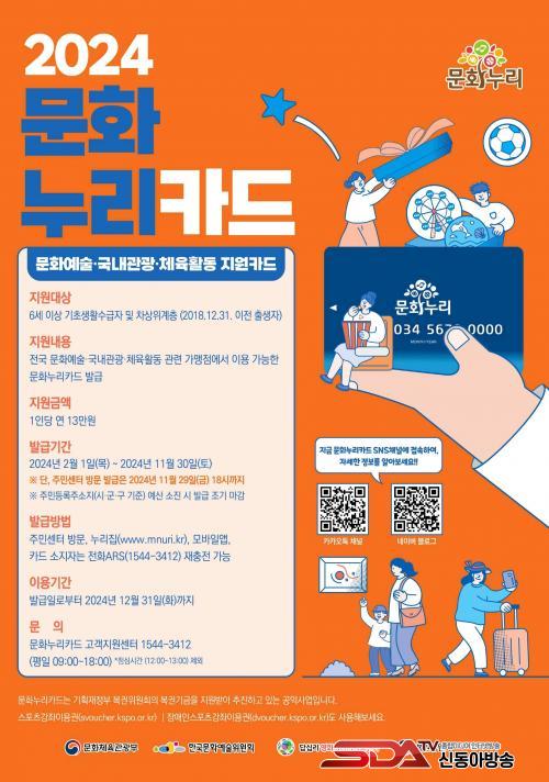 ¹®È´©¸®Ä«µå ¹ß±Þ ´ë»óÀº 6¼¼ ÀÌ»ó(2018. 12. 31. ÀÌÀü Ãâ»ýÀÚ)ÀÇ ±âÃÊ»ýȰ¼ö±ÞÀÚ ¶Ç´Â Â÷»óÀ§°èÃþÀ¸·Î, ¿ÃÇØºÎÅÍ ¿¬°£ ±âÁ¸ 11¸¸ ¿ø¿¡¼ 2¸¸ ¿ø »óÇâµÈ 13¸¸ ¿øÀ» Áö¿øÇÑ´Ù. 11¿ù 30ÀϱîÁö µ¿´ë¹®±¸Ã» ¹®È°ü±¤°ú ¶Ç´Â µ¿Áֹμ¾Å͸¦ ¹æ¹®Çϰųª ´©¸®Áý(www.mnuri.kr), ¹®È´©¸® ¸ð¹ÙÀϾÛÀ» ÅëÇØ ¹ß±Þ¹ÞÀ» ¼ö ÀÖ´Ù.