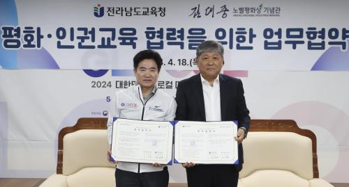 µÎ ±â°üÀº ÀÌ Çù¾àÀ» ÅëÇØ ¹ÎÁÖÁÖÀÇ, ÀαÇ, Æòȸ¦ Áö۱â À§ÇØ Æò»ýÀ» ¹ÙÄ£ Çѱ¹ÀÎ ÃÖÃÊ ³ëº§ÆòÈ»ó ¼ö»óÀÚ °í ±è´ëÁß ´ëÅë·É Á¤½Å °è½Â ±³À°Çϱâ·Î ÇÕÀÇÇß´Ù.