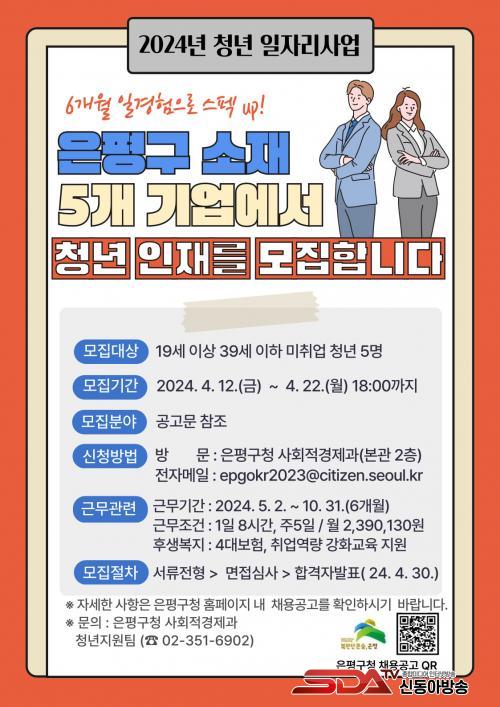 ¼±¹ßµÈ û³âÀº °ü³» ±â¾÷¿¡¼ ³»´Þ 2ÀϺÎÅÍ 10¿ù 31ÀϱîÁö 6°³¿ù°£ ±Ù¹«ÇÒ ¿¹Á¤ÀÌ´Ù. ¿ÃÇØ ÀºÆò±¸ »ýȰÀÓ±ÝÀÎ ¿ù 2¹é39¸¸ 130¿øÀÇ ±Þ¿©¿Í 4´ë º¸Çè, Á÷¹«¿ª·®°È ±³À° µîÀ» Áö¿ø¹Þ´Â´Ù.