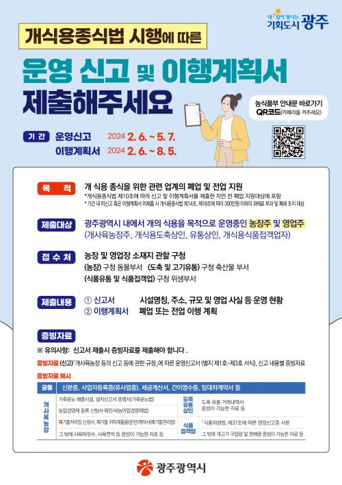 ÀÌ¿¡ µû¶ó ±âÁ¸ °³ ½Ä¿ë °ü·Ã »ç¾÷ÀåÀ» ¿î¿µ ÁßÀÎ »ç¾÷ÀÚ´Â ¿À´Â 5¿ù 7ÀϱîÁö ¿î¿µ½Å°í¼¸¦ ¿µ¾÷Àå ¼ÒÀçÁö ÀÚÄ¡±¸·Î Á÷Á¢ Á¦ÃâÇØ¾ß ÇÑ´Ù. ½Å°íÇÑ ¾÷üµéÀº ¿À´Â 8¿ù 5ÀϱîÁö ¿µ¾÷Àå °¨Ãà °èȹ, Àü¾÷, Æó¾÷ ÀÏÁ¤ÀÌ ´ã±ä ÀÌÇà°èȹ¼¸¦ Á¦ÃâÇØ¾ß ÇÑ´Ù.