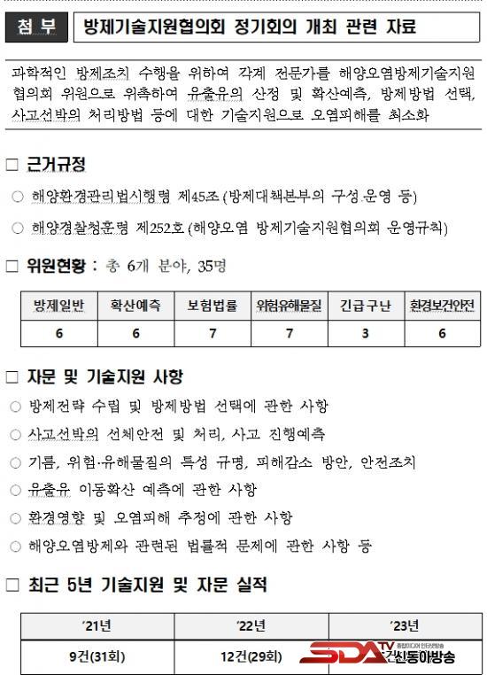 ÇØ¾ç¿À¿° ¹æÁ¦±â¼úÁö¿øÇùÀÇȸ´Â ¹æÁ¦ÀÏ¹Ý ⦁À¯ÃâÀ¯È®»ê¿¹Ãø ⦁º¸Çè¹ý·ü ⦁À§ÇèÀ¯Çع°Áú ⦁±ä±Þ±¸³ ⦁ȯ°æº¸°Ç¾ÈÀüÀ¸·Î ÀÌ·ç¾îÁø 6°³ ºÐ¾ß, 35¸íÀÇ ¹Î°£Àü¹®°¡·Î ±¸¼ºµÇ¾î ÇØ¾ç¿À¿° »ç°í ¹ß»ý ½Ã ÇÊ¿äÇÑ ÇÕ¸®ÀûÀÌ°í °úÇÐÀûÀÎ ¹æÁ¦ Á¶Ä¡¸¦ À§ÇÏ¿© ±â¼ú ÀÚ¹® µî Áö¼Ó ¼ÒÅë・Çù·ÂÇß´Ù.