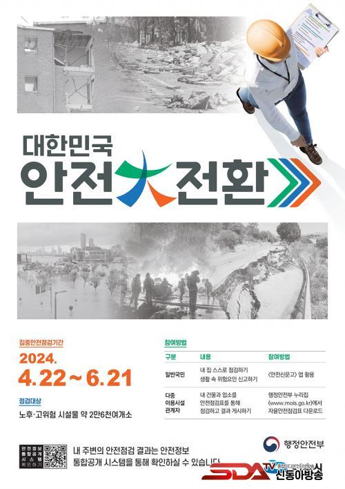 À̹ø Á¡°ËÀº Áö³ 2015³âºÎÅÍ ½ÃÀÛµÈ ´ëÇѹα¹ ¾ÈÀü´ëÀüȯ ±â°£À» ¸Â¾Æ ¾ÈÀü°ü¸® ½ÇŸ¦ Á¡°ËÇϰí, À§Çè ¿äÀÎÀ» ÇØ¼ÒÇØ °¢Á¾ Àç³À¸·ÎºÎÅÍ ½Ã¹Î ¾ÈÀüÀ» È®º¸Çϱâ À§ÇØ ¸Å³â ½Ç½ÃµÇ°í ÀÖ´Ù.