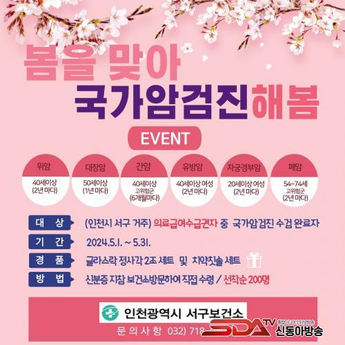 À̹ø À̺¥Æ®´Â 5¿ù ¾È¿¡ ±¹°¡¾Ï°ËÁøÀ» ¹ÞÀº ÀÇ·á±Þ¿©¼ö±Þ±ÇÀÚ(¼±¸ °ÅÁÖ)¸¦ ´ë»óÀ¸·Î ÁøÇàµÈ´Ù. ±â°£ ³» °ËÁø¹ÞÀº ´ë»óÀÚ°¡ ½ÅºÐÁõ°ú °ËÁø °á°úÁö¸¦ ÁöÂüÇÏ¿© º¸°Ç¼Ò(¹æ¹®º¸°ÇÆÀ)¿¡ ¹æ¹®ÇÏ¸é °æÇ°À» ¼ö·É ÇÒ ¼ö ÀÖ´Ù. °æÇ°Àº ±Û¶ó½º¶ô Á¤»ç°¢ 2Á¶ ¼¼Æ®¿Í Ä¡¾àÄ©¼Ö ¼¼Æ®·Î ±¸¼ºµÆÀ¸¸ç, ¼±Âø¼ø 200¸í¿¡°Ô Áö±ÞµÈ´Ù.