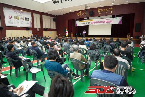 ÀÌÇÊÇü µ¿´ë¹®±¸Ã»ÀåÀº ¡°À̹ø ¼³¸íȸ´Â Áß´ëÀçÇØÃ³¹ú¹ý¿¡ ´ëÇÑ »ç¾÷ÀåÀÇ ºÒ¾ÈÀ» ÇØ¼ÒÇϰí ÇöÀåÀÇ ¸ñ¼Ò¸®¸¦ µè±â À§ÇØ ¸¶·ÃµÆ´Ù¡±¸ç ¡°Áß´ëÀçÇØÃ³¹ú¹ýÀÌ »ç¾÷ ÇöÀå¿¡ ½Å¼ÓÇÏ°Ô Àû¿ëµÉ ¼ö ÀÖµµ·Ï ³ë·ÂÇØ ÁÖ½Ã±æ ¹Ù¶õ´Ù¡±°í ¸»Çß´Ù.