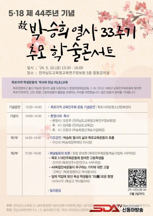 ¿ÀÈÄ 1½Ã 30ºÐºÎÅÍ´Â 5Ãþ ÇÕµ¿°Àǽǿ¡¼ 5¡¤18¹ÎÁÖȿ 44ÁÖ³âÀ» ±â³äÇÏ°í ¸ñÆ÷Á¤¸í¿©°í Ãâ½Å °í(ͺ) ¹Ú½ÂÈñ ¿»çÀÇ ºÐ½ÅÇ×°Å 33Áֱ⸦ Ã߸ðÇÏ´Â ÇмúÄܼƮ°¡ ¡®¸ñÆ÷Áö¿ª °íµîÇлý¿îµ¿ÀÇ ¿ª»ç¿Í Àü³² ÀÇ(ëù)±³À°¡¯À̶ó´Â ÁÖÁ¦·Î ¿¸°´Ù.