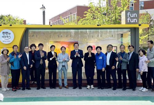 À̹ø¿¡ Á¤½Ä °³°üÇÑ ÆÝÆÝÇÑ ¾ÆÆ®¹Ú½º´Â ±¤Àå, °ø¿ø µî ÁֹεéÀÌ ÀÚÁÖ Ã£´Â °÷¿¡ ¿¹¼úÀÛǰ Àü½Ã °ø°£À» ¸¶·ÃÇÏ¿© Æò¹üÇÑ ÀÏ»ó¿¡ Áñ°Å¿ò°ú Ȱ·ÂÀ» Á¦°øÇϰíÀÚ ºÏ±¸°¡ Áö³ 2¿ù Á¶¼ºÇÑ ÄÁÅ×À̳ÊÇü Àü½Ã°üÀÌ´Ù.