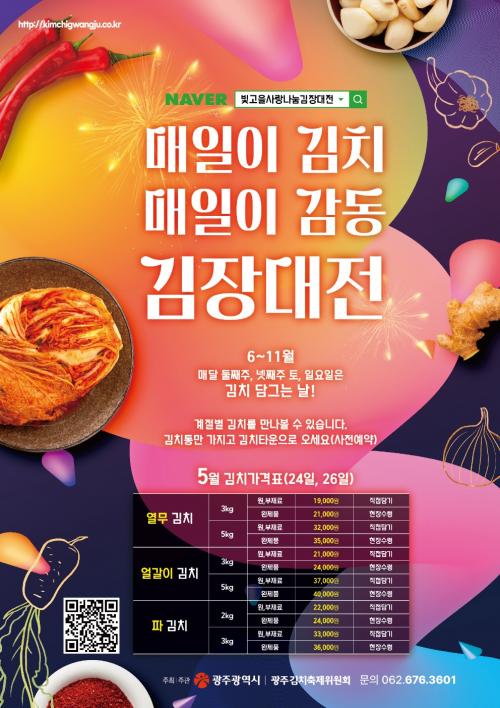 ƯÈ÷ 25ÀÏ ½Ã¹ÎÀÇ ³¯ Çà»ç¿Í ¿¬°èÇØ ±¤ÁÖ½Ãû¿¡¼­ ±èÄ¡´ã±×±â ¿¬Áß ÇÁ·Î±×·¥ È«º¸ Çà»ç¸¦ ÁøÇàÇÑ´Ù. Çà»ç ´çÀÏ È«º¸ºÎ½º¿¡¼­ ½Ã¹ÎÀ» ´ë»óÀ¸·Î ±¤ÁÖ±èÄ¡ÀÇ ¸ÀÀ» ¾Ë¸®±â À§ÇØ ±¤ÁÖ±èÄ¡ 80g 500°³ ÇÑÁ¤ »Ì±â À̺¥Æ®¸¦ ÆîÄ£´Ù.