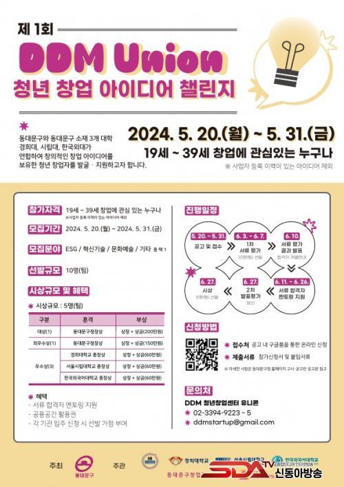 [½Åµ¿¾Æ¹æ¼Û µ¿´ë¹®±¸=À̽ŵ¿±âÀÚ]¼­¿ï µ¿´ë¹®±¸°¡ ÁÖÃÖÇÏ°í °æÈñ´ëÇб³, ¼­¿ï½Ã¸³´ëÇб³, Çѱ¹¿Ü±¹¾î´ëÇб³, µ¿´ë¹®±¸ â¾÷Áö¿ø¼¾ÅÍ, DDM û³ââ¾÷¼¾ÅÍ À¯´ÏÄÜÀÌ °øµ¿ ÁÖ°üÇÏ´Â ¡®Á¦1ȸ DDM Union û³â â¾÷ ¾ÆÀ̵ð¾î 縰Áö¡¯°¡ ¿À´Â 6¿ù °³ÃֵȴÙ.