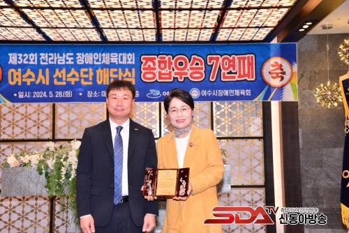 [½Åµ¿¾Æ¹æ¼Û¿©¼ö=±è±â³² ±âÀÚ] ¿©¼ö½Ã Àå¾ÖÀÎüÀ°È¸(°­¿ì¿¬ ¼ö¼® ºÎȸÀå)´Â Á¦32ȸ Àü¶ó³²µµ Àå¾ÖÀÎüÀ°´ëȸ ÇØ´Ü½Ä¿¡¼­ ¿©¼ö½ÃÀÇȸ ¹Î´öÈñ ½ÃÀÇ¿øÀÌ È¯°æº¹ÁöÀ§¿øÈ¸ À§¿øÀåÀ¸·Î ÀçÀÓÇÏ´Â µ¿¾È ¼Ò¿Ü°èÃþÀ» À§ÇÑ ´Ù¾çÇÑ ½ÃÃ¥ ÃßÁø¿¡ °ü½ÉÀ» °¡Áö°í ¿©¼ö½Ã Àå¾ÖÀÎüÀ° Àúº¯ È®´ë¿¡ ±â¿©ÇÑ °ø·Î·Î °¨»çÆÐ¸¦ ¼ö¿©Çß´Ù.