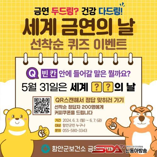 [½Åµ¿¾Æ¹æ¼Û ÇԾȱº=À̽ŵ¿±âÀÚ]ÇԾȱºº¸°Ç¼Ò¿¡¼­´Â Á¦37ȸ ¼¼°è ±Ý¿¬ÀÇ ³¯(World No Tabaco Day)À» ¸Â¾Æ, Áö¿ª¹Î°ú ÇÔ²²ÇÏ´Â ¡®±Ý¿¬ ÄûÁî À̺¥Æ®¡¯¸¦ ÁøÇàÇÑ´Ù°í ¹àÇû´Ù.