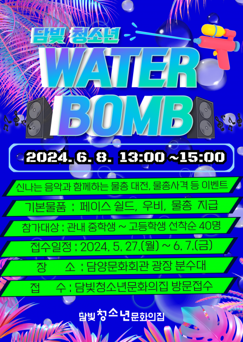 À̹ø Çà»ç´Â ´õÀ§¿¡ ÁöÄ£ û¼Ò³âµéÀÇ ½ºÆ®·¹½º ÇØ¼Ò¸¦ À§ÇØ ´ã¾ç±º û¼Ò³â Âü¿©±â±¸°¡ ÁÖµµÀûÀ¸·Î Á÷Á¢ Çà»ç¸¦ ±âȹÇßÀ¸¸ç, ¹°ÃÑ ´ëÀü, ¹°ÃÑ »ç°Ý µî ¹°À» ÀÌ¿ëÇÑ ½Ã¿øÇÑ °ÔÀÓÀ» ÁøÇàÇÑ´Ù.