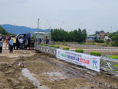 [½Åµ¿¾Æ¹æ¼Û=ÀÌÁöÇö±âÀÚ] Áö³­ 7ÀÏ ¿µ±¤±ºÀº ³ó¾÷ÀÎ µî 30¿© ¸íÀÌ Âü¼®ÇÑ °¡¿îµ¥ ¿°»ê¸é¿¡¼­ º­ À°¹¦»óÀÚ ÀÚµ¿À̼ÛÀåÄ¡ ÇöÀå ¿¬½Ãȸ¸¦ °³ÃÖÇß´Ù.
